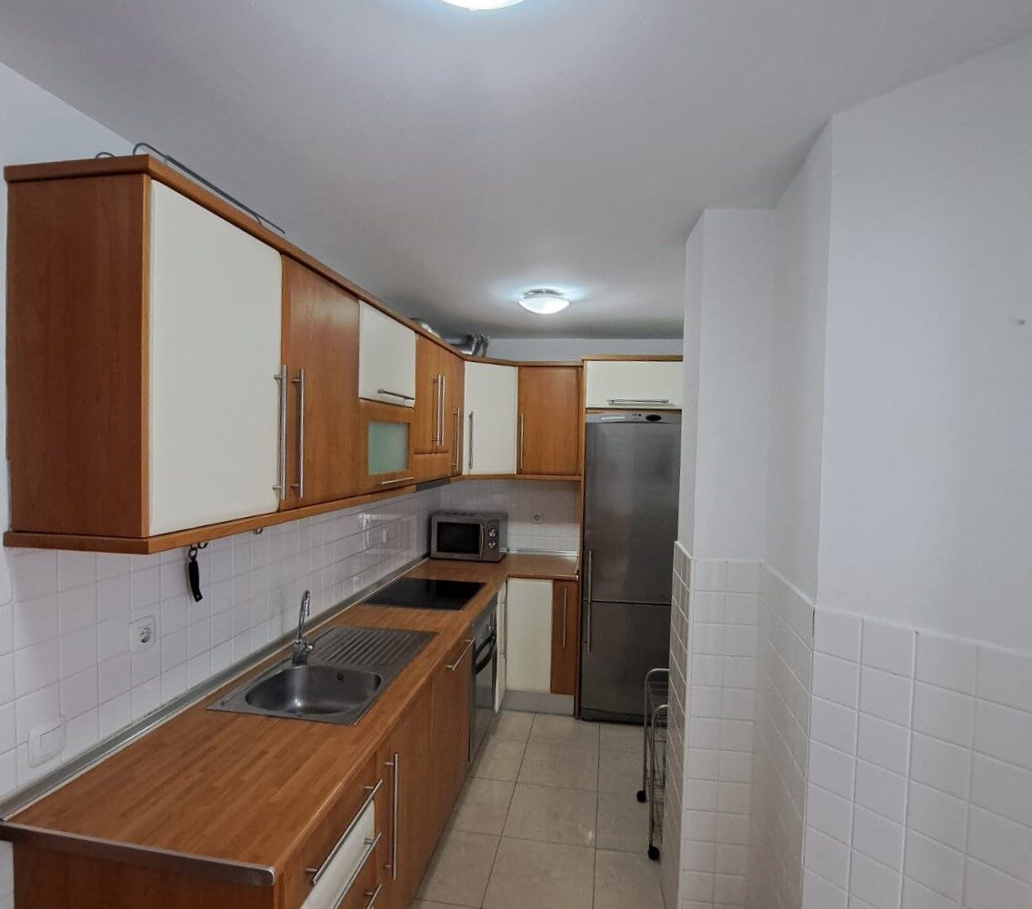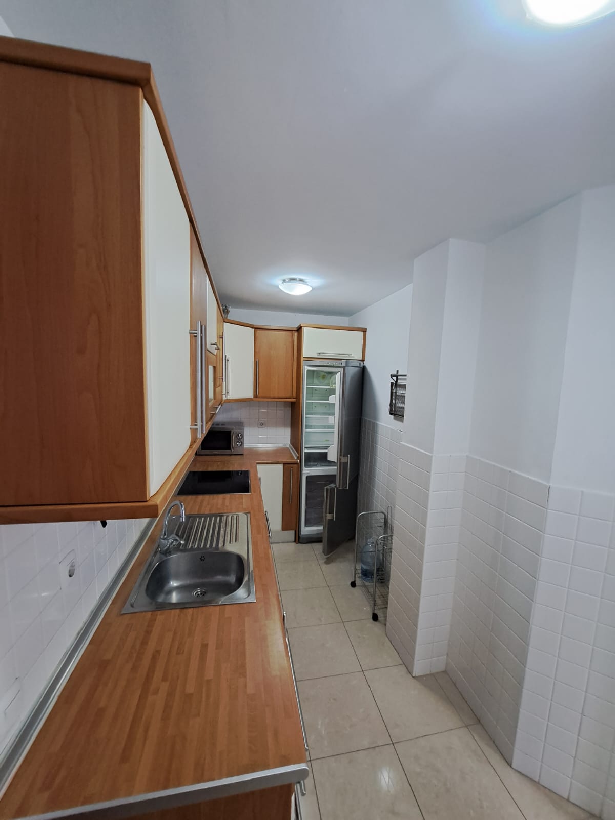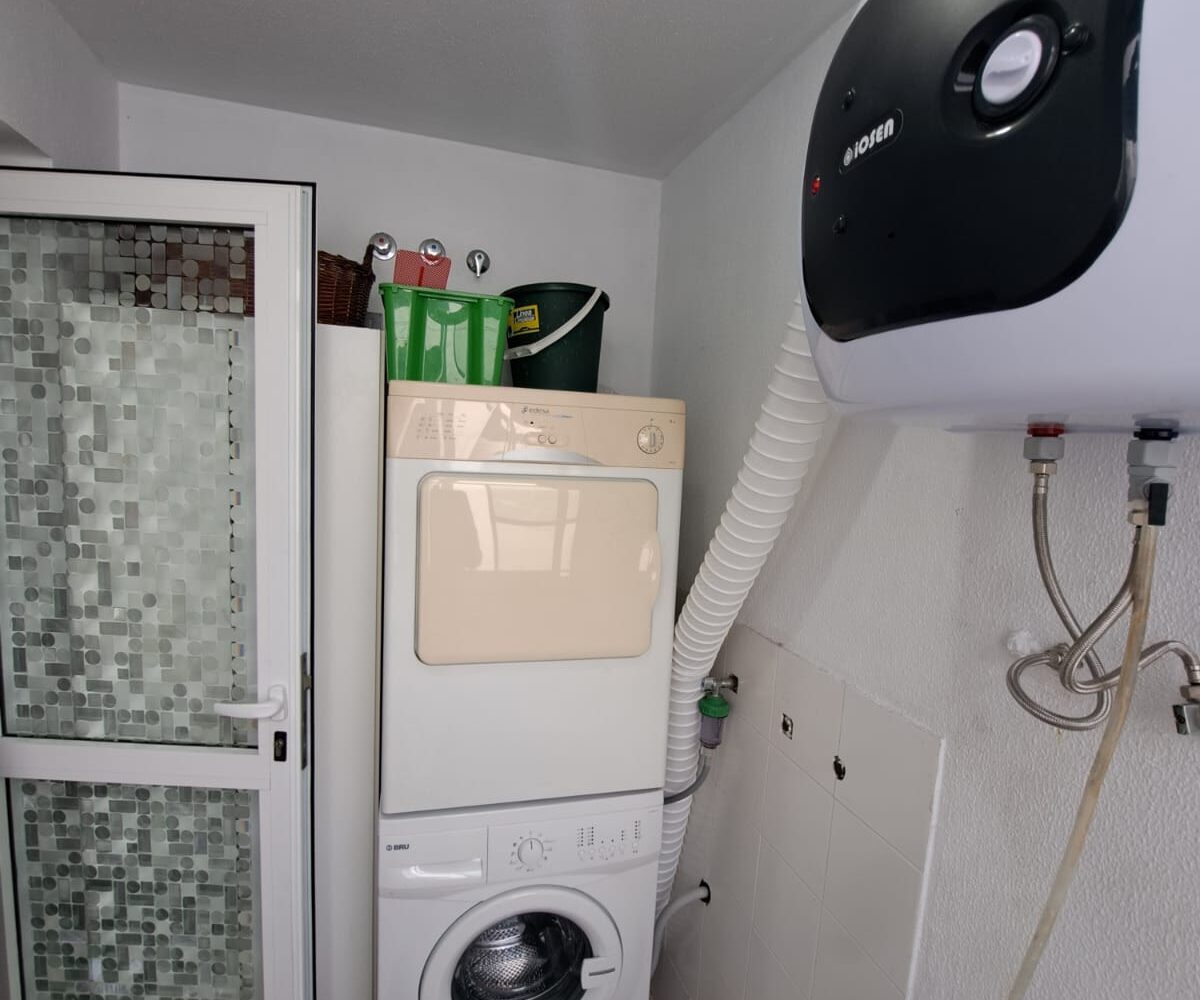 Este pisito consta de dos dormitorios, baño, salón-comedor, solana, cocina independiente, cuarto lavadero y plaza de garaje. Semiamueblado, dispone de bastante luminosidad, y goza de una gran amplitud.